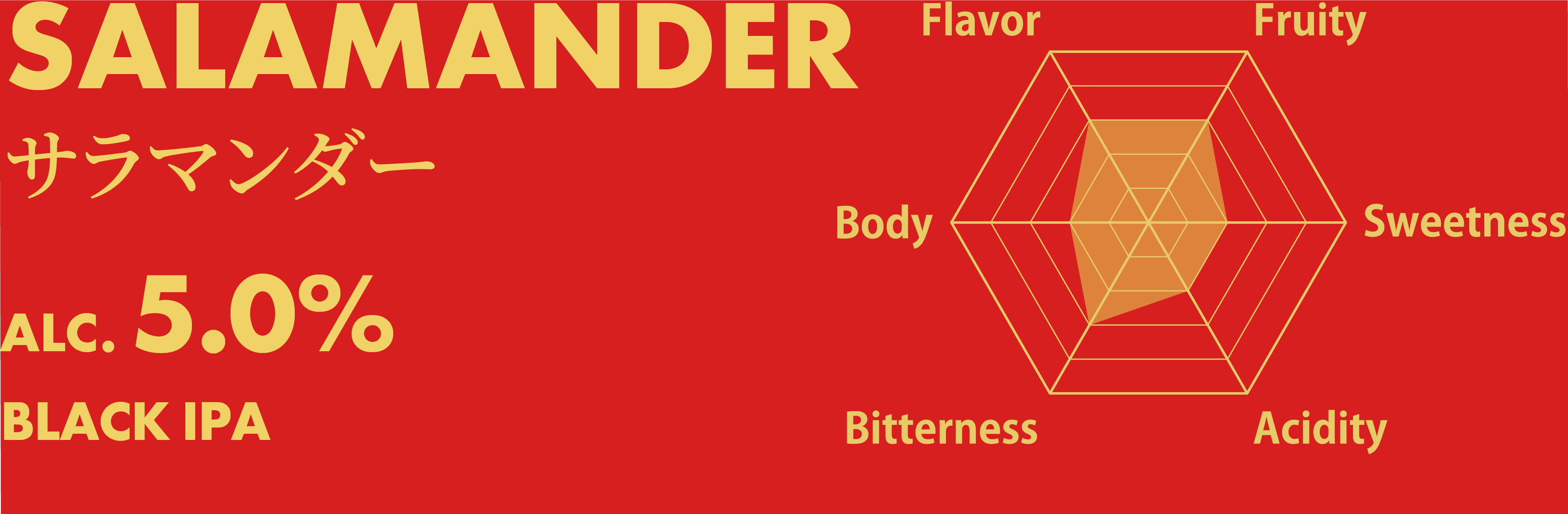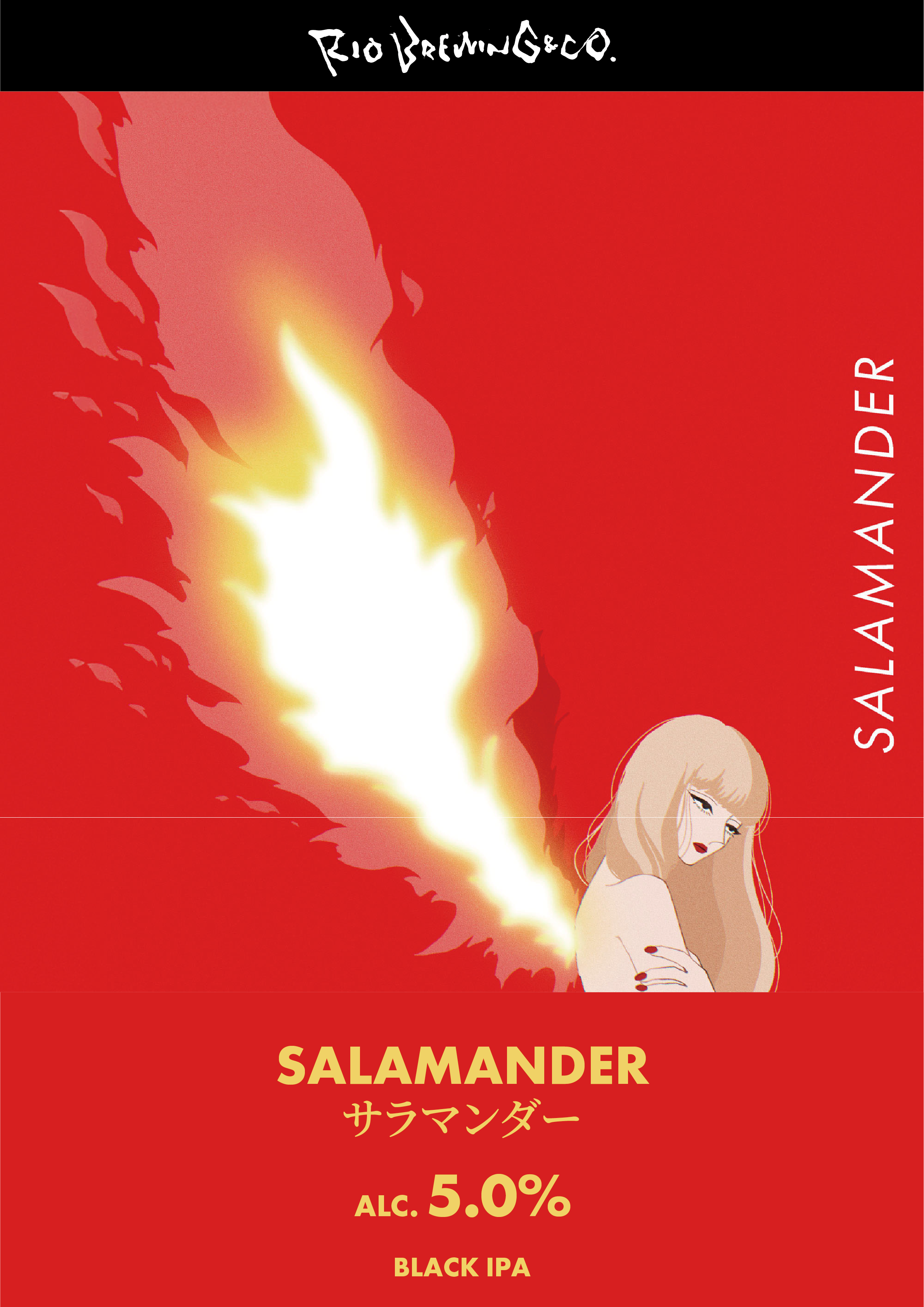 丁寧に時間をかけて焙煎されたローステッドバーレイ特有の焚火を思わせる様な深いコクが鼻腔をくすぐり、グラスの中で変化するホップのグラッシーさが複雑な奥行きを与え、香りのグラデーションを生む。一口ごとに火の妖精「サラマンダー」があなたの心に火を灯すドリンカブルなBLACK IPA。