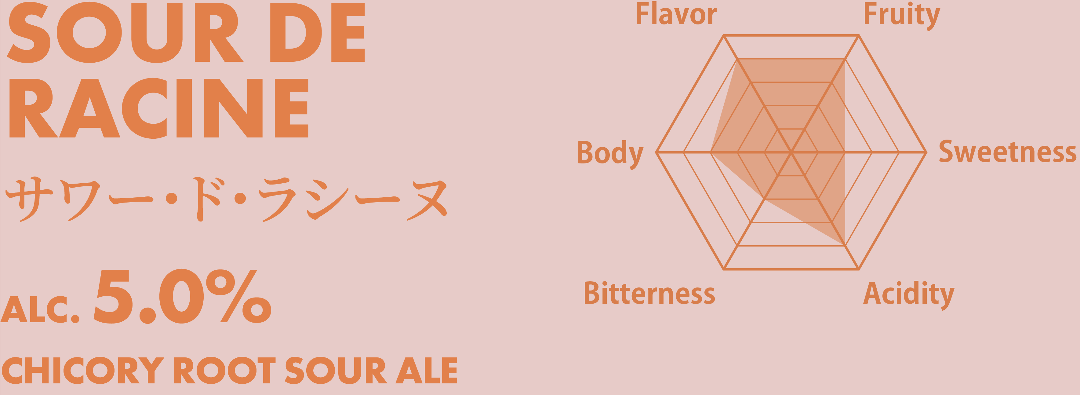 チコリルート(チコリの根)はローストするととても華やかな香りを纏うことで知られ、ヨーロッパでは根強いファンが多い。サワーの酸味は残しつつも、酵母由来のフルーティーさと、ローストしたチコリルートの華やかさが合わさり、洋梨やマスカットを思わせるフローラルな香りがするライトサワーエール。